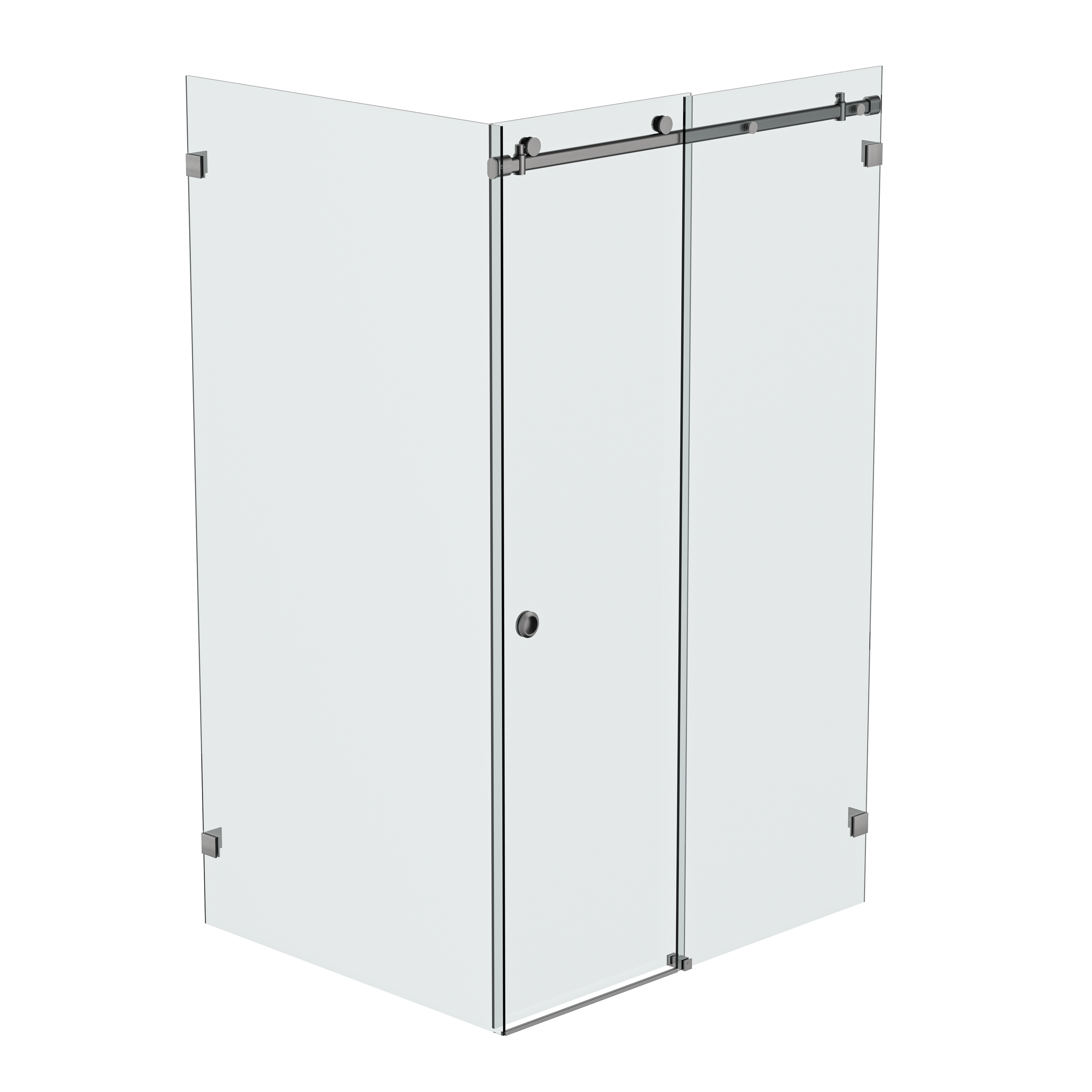 Bellé Wall to Glass Corner Frameless Shower Sliding System Left Hand Fixed - Brushed Gun Metal